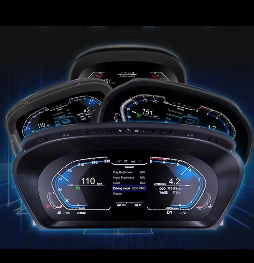 يعرض السرعة، عدد الدورات، أنماط القيادة، ونظام الملاحة برسوم احترافية مشابهة لعدادات M الأصلية.